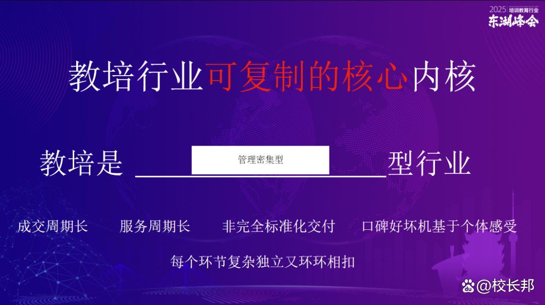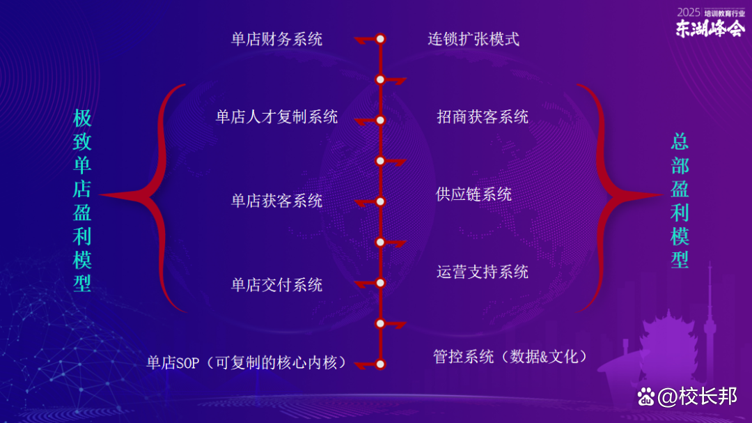 然而无论增长点在何处,教培机构的管理和运营的核心始终不变,唯有修炼好内功,才能稳稳接住“泼天的机遇”。硕果商学院创始人裘杨深耕教育行业26年,其中15年专注于教培机构的连锁加盟与直营管理,曾操盘过2800家连锁门店,历经行业起伏与挑战,在连锁经营领域有着深厚的造诣。在2025培训教育行业东湖峰会上,裘杨结合教培行业特点,为与会者带来了一场教培行业可复制的连锁经营十大系统的干货课程。