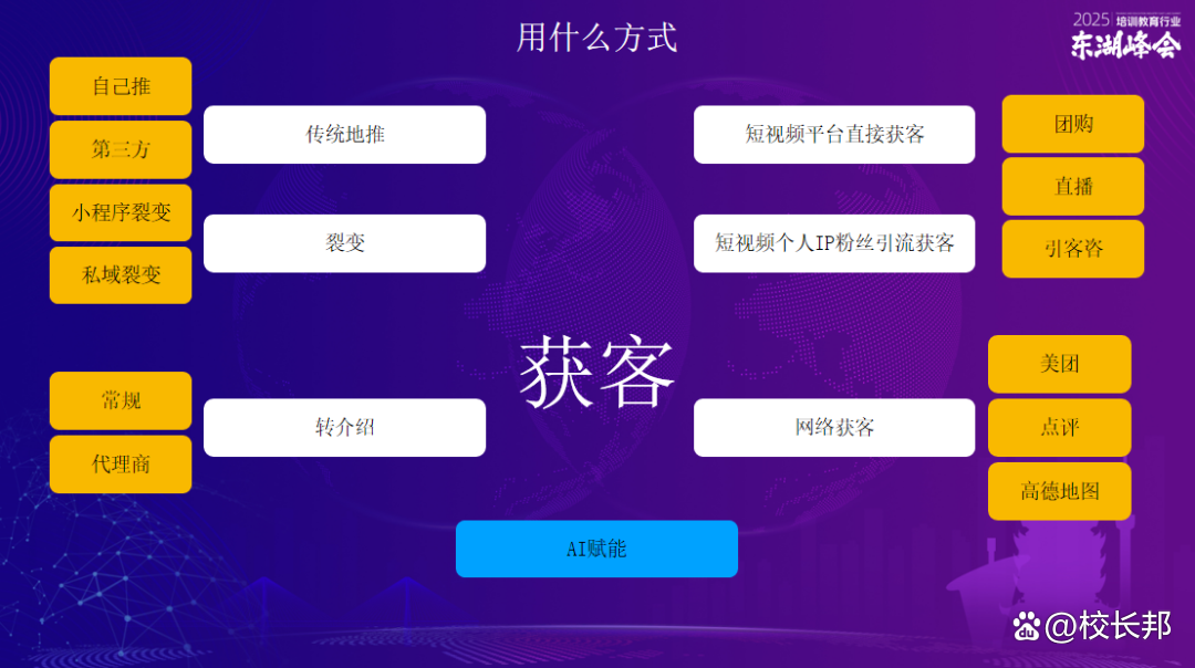 裘杨指出,获客是管理密集型行业的重要环节,需要明确获客渠道、成本和ROI。传统地推、裂变、转介绍、短视频和个人IP以及网络获客等都是目前常用的获客方式。“同样是短视频获客,你的重点是放在个人IP打造上还是用团购或者直播直接获客呢?比如用转介绍的方式,你是直接找家长呢还是选择代理商呢?无论哪种方式都需要大家细致地去分析,要重视和投入。”现场,裘杨举了一个例子,一家小型的舞蹈机构,仅仅用两天半的时间就地推了283个小课包,这恰恰说明只要愿意投入时间和精力,地推这类的传统获客方式依然有效,而且性价比高。