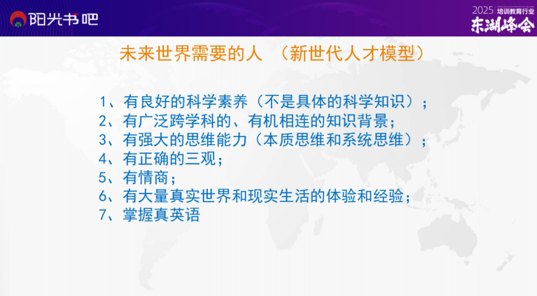 阳光教育集团创始人吕福生先生在2025培训教育行业东湖峰会中指出,当ChatGPT-4o展现出超越人类的语言处理能力时,真正的英语教育应回归语言本质——培养母语式思维、跨文化理解和 AI 时代必备的认知竞争力。这不仅是应对技术冲击的必然选择,更是重构教育价值体系的关键路径。