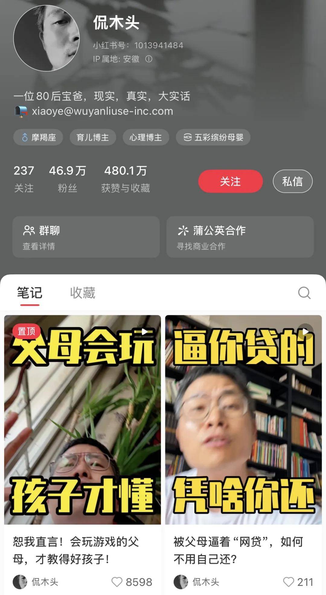 也可以是分享新颖的教育理念。家庭教育博主@侃木头,给自己的人设标签就是“现实、真实、大实话”,频出金句“会玩游戏的父母,才教得好孩子”、“为什么牺牲式父母,家多出白眼狼”,让人印象深刻,在小红书涨粉46.9万。