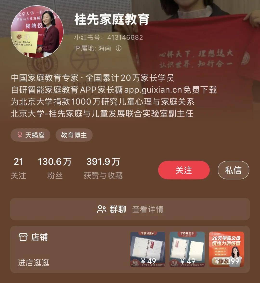 @桂先家庭教育,小红书粉丝130.6万,单月变现700w......