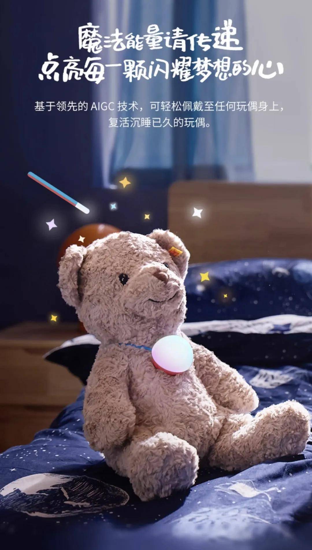 2024年7月,跃然创新推出了BubblePal蘑菇挂件,只需附着在普通毛绒玩具上,用户就能跟它语音交互,它还会提供生成式故事与知识问答。
