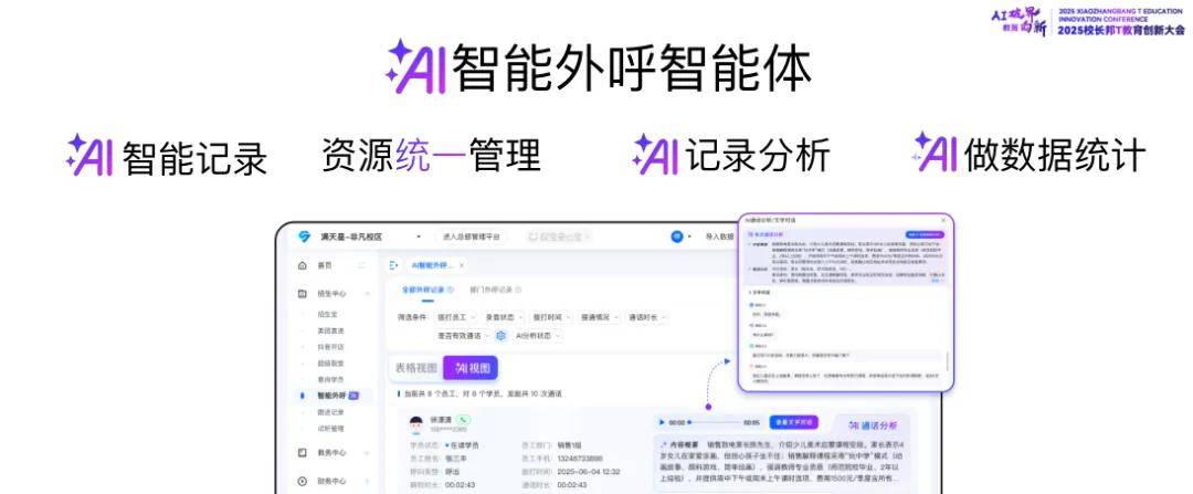AI智能外呼智能体与AI线索跟进智能体组成 “金牌招生组合”,实现从触达、记录到分析、跟进的闭环管理,全程助力线索转化。整个过程不需要人工记录,避免漏记、错记的情况发生。