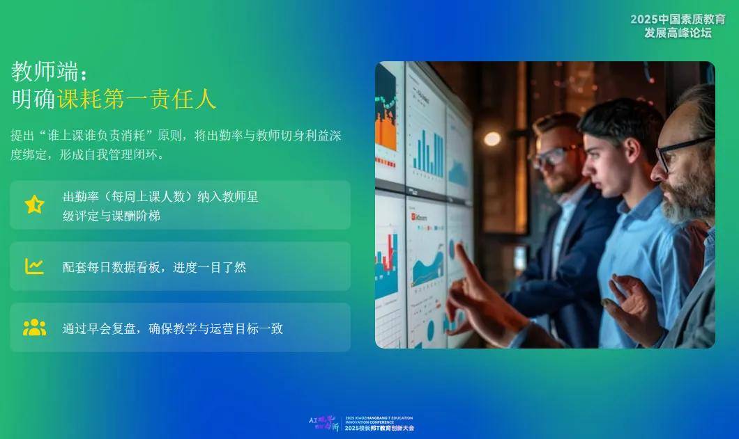 给老师的激励要聚焦于课消上。不给老师分销售提成,而是把课消收入的一部分作为奖励。只有课消消耗了,家长才会续费,老师也能持续拿到收益。