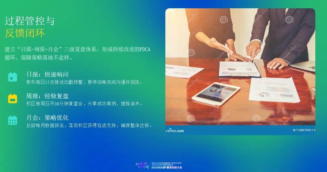 中层校区负责人如果不盯过程,就不会主动汇报,所以必须紧盯每一步执行:要求负责人随时截图工作进展、反馈沟通结果,把过程管控落到实处。只有把过程管好了,才能保证最终的课消和利润结果。