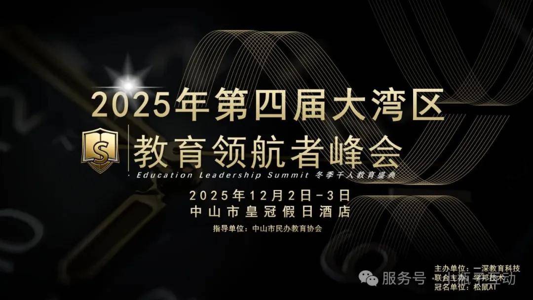 12月2日-3日,广东中山永安新城皇冠假日酒店,「第四届大湾区教育领航者峰会」2025年度收官盛宴来袭!大会主办方花了整整半年打磨大会,只想给你 4个不得不来的理由: